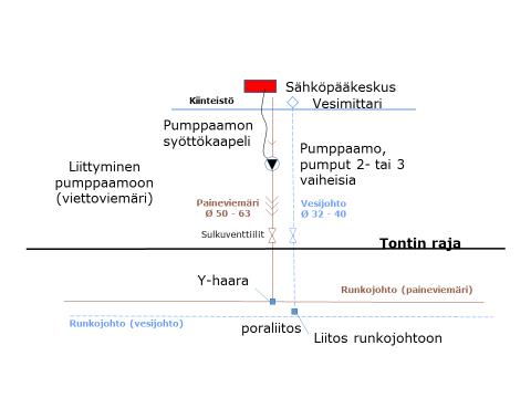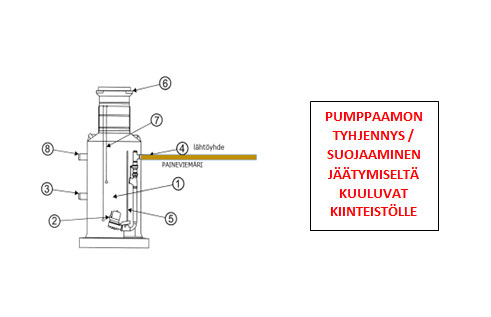 Kiinteistöpumppaamo ja siitä kiinteistöön johtava putkiosuus sekä kiinteistön sisäpuoliset järjestelmät kuuluvat kiinteistön vastuulle.